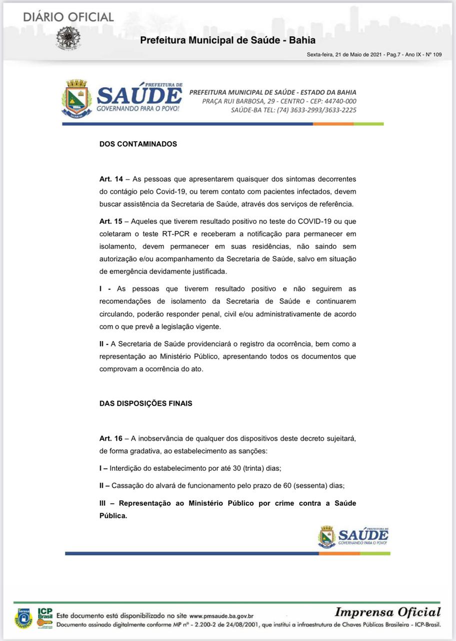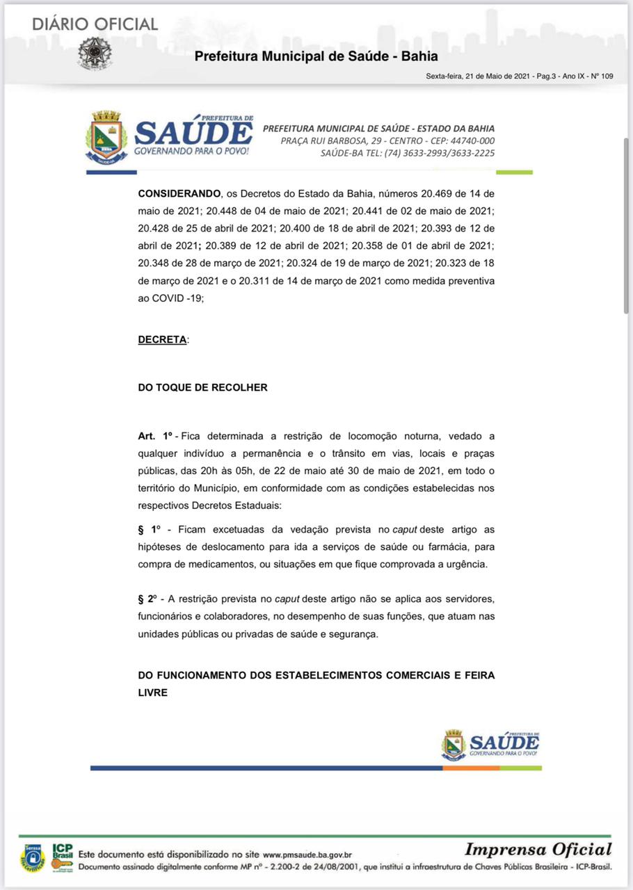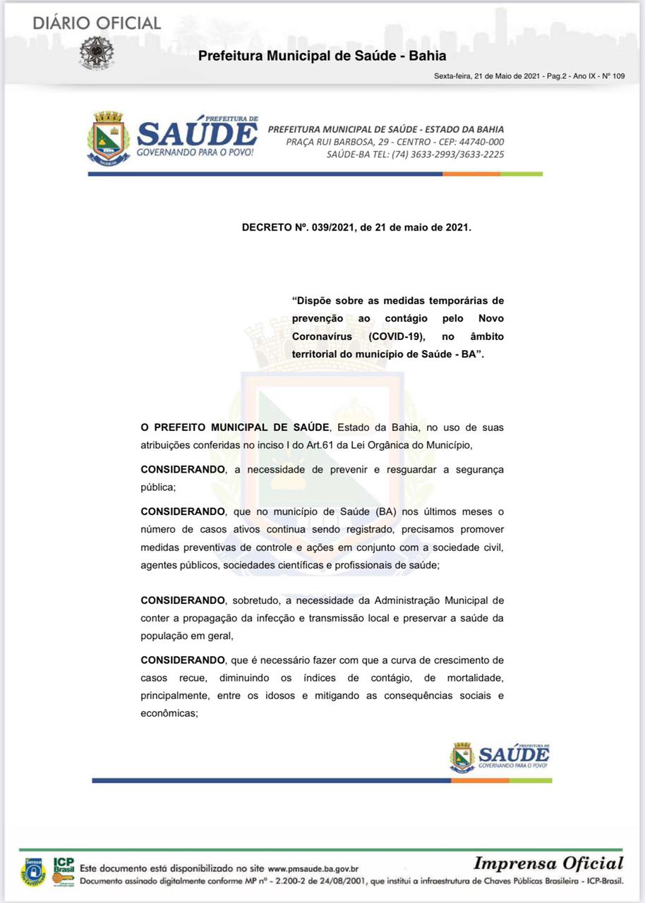 A Prefeitura Municipal de Saúde, faz-se saber por meio deste a publicação do novo Decreto Municipal.